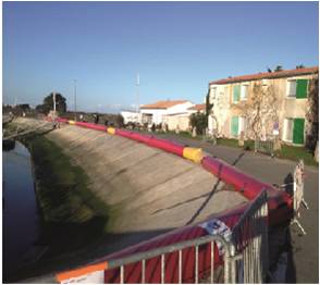 Las barreras son hechas con tubos flexibles, llenas de agua para quedarse estables en el suelo. Los tramos se apilan en altura y se conectan entre ellos para constituir una barrera con medidas variables (largo y alto) según la necesidad. Pueden contener inundaciones y constituyen una muralla en caso de altas mareas en los puertos. Se instalan por anticipación antes de la subida de las aguas.